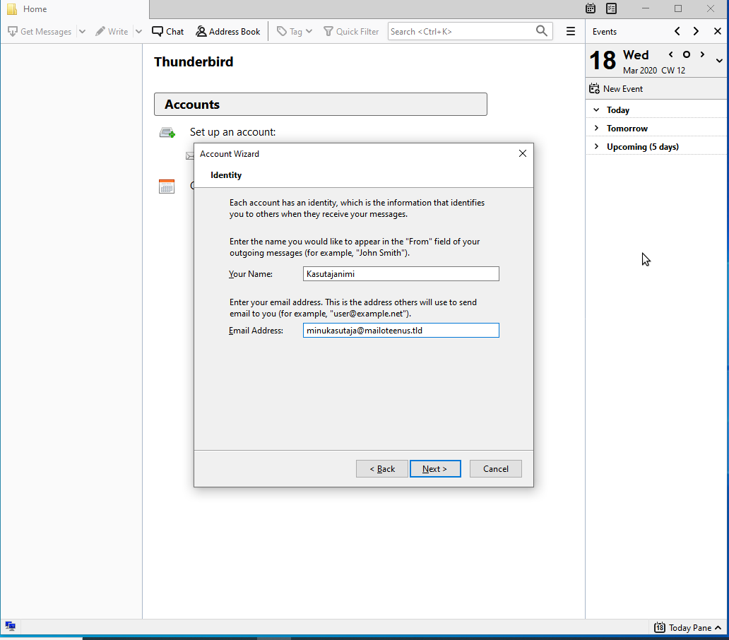 Antud andmed ei ole vajalikud serveri haldajale, ei pea olema samad sisselogimiskontoga.